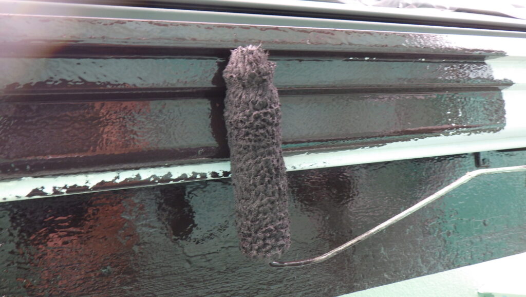 弱溶剤系シリコン樹脂塗料を使用しているので、下塗り塗料で使用したザウルスEXとの密着性が抜群です。