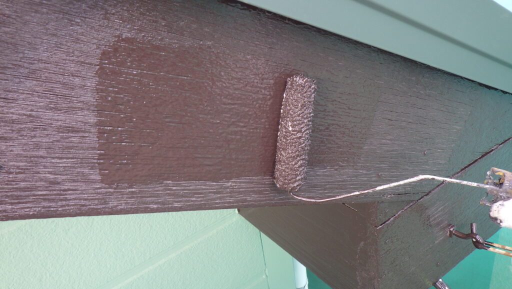 木部に下塗り材を塗り込むことにより上塗りをした時の吸い込みが少ない表面を作り、木目を消すことなく、綺麗に仕上がりました。