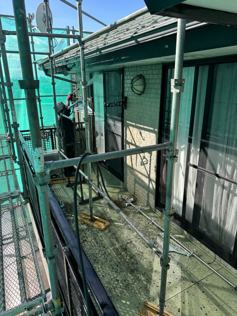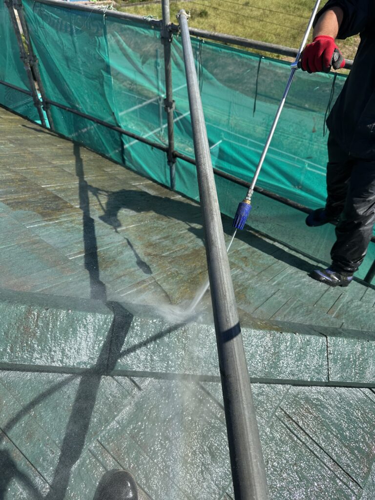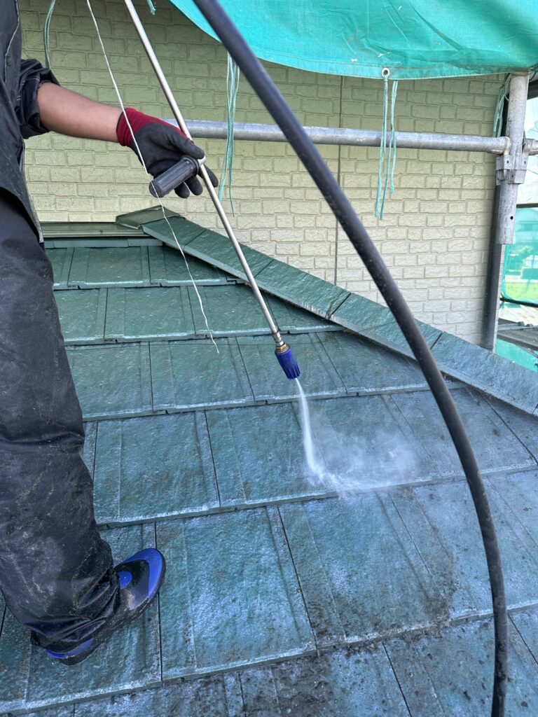 屋根の高圧洗浄中です。