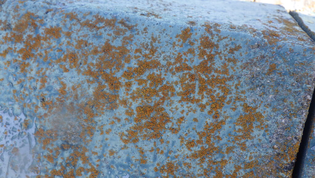 東面、西面ともに日光や紫外線を受けやすく、また雨水に当たりやすい箇所には、既存保護塗膜が劣化してしまいチョーキング現象が確認できました。