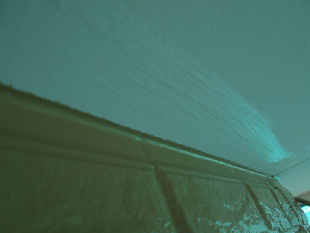 外壁を仕上げているときに、軒天に外壁塗料がついてしまいました。