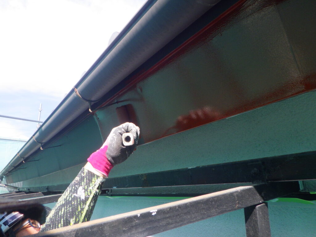 外壁取り合いと並行して錆止め塗装を行いました。