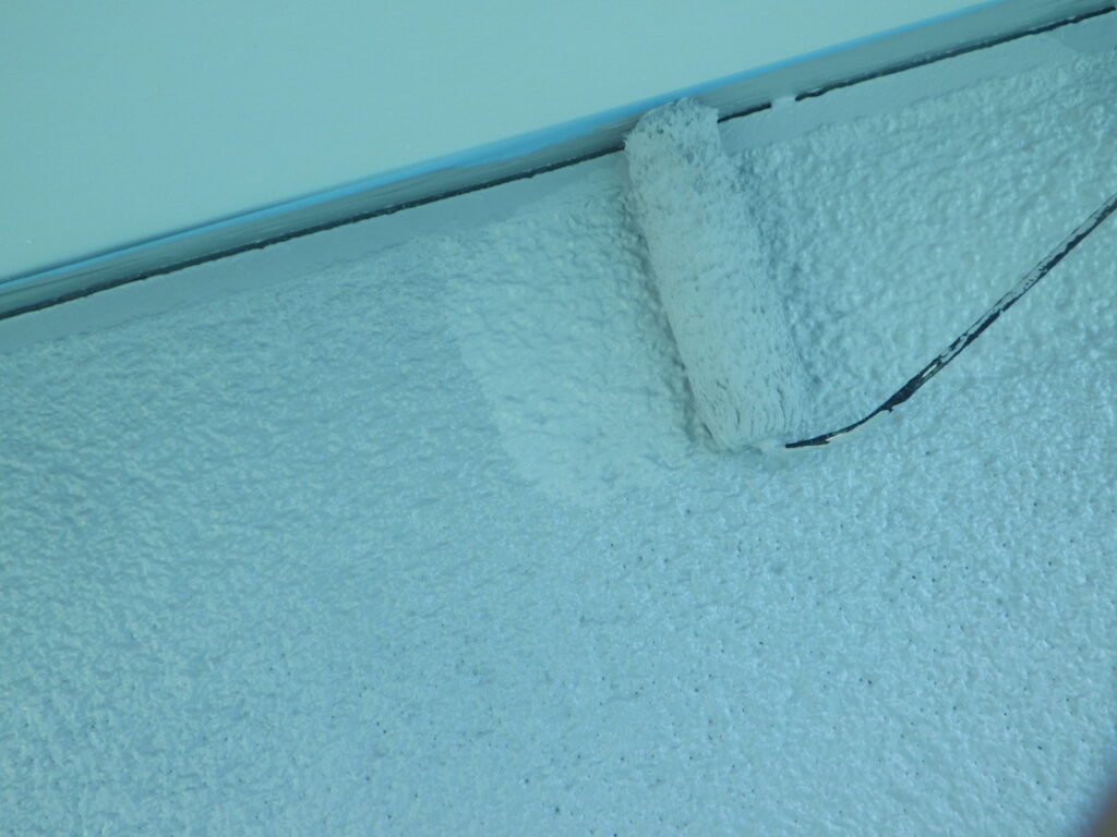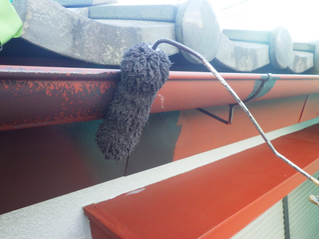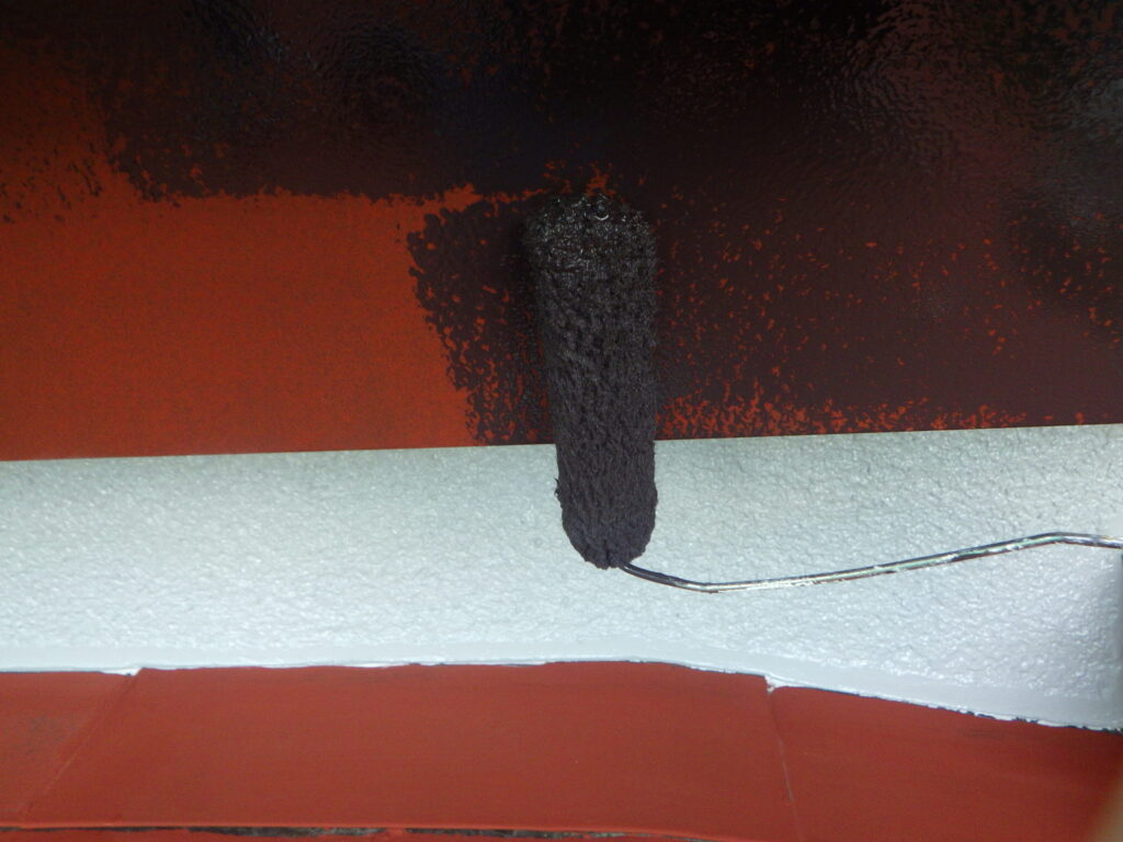 細かい箇所は、刷毛で塗装をして、全体がなじむようローラーを転がしています。