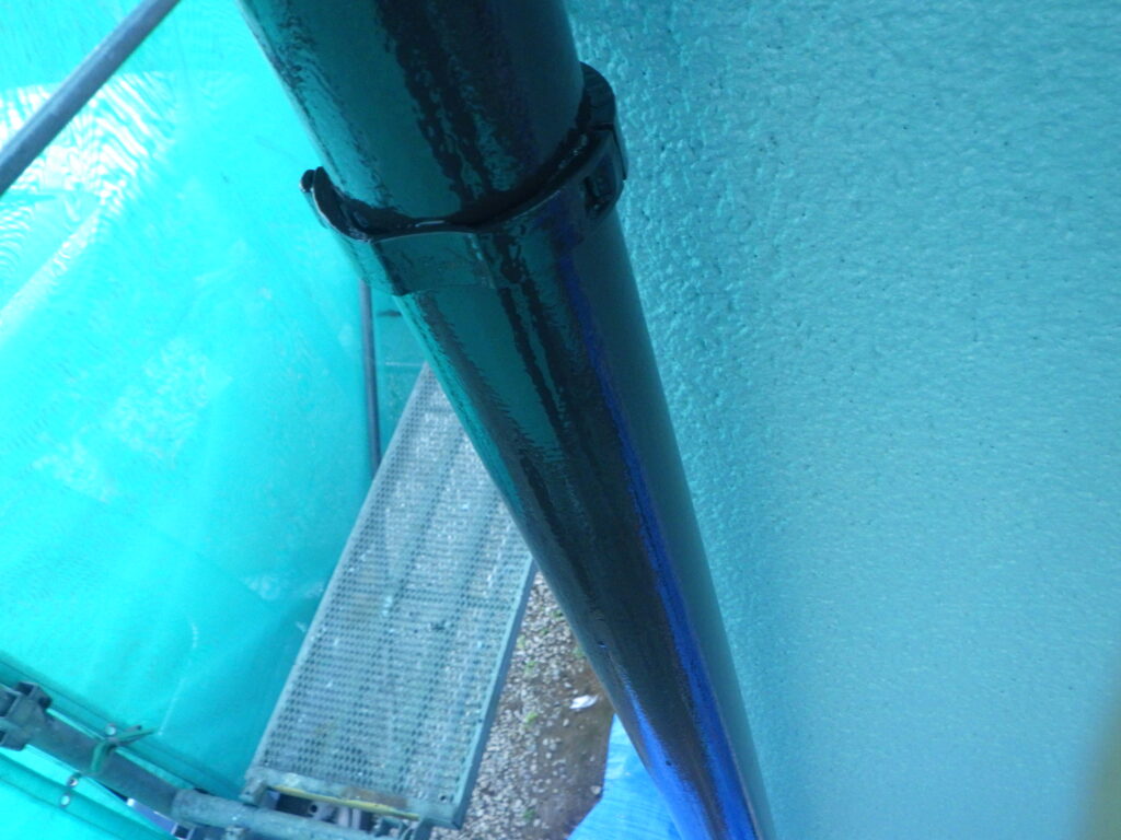 竪樋の塗装が完了しました。