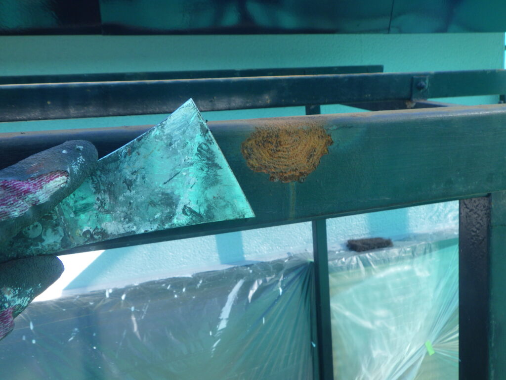 内側から劣化が進んでしまい、腐食の原因となるので錆を綺麗に除去していきます。