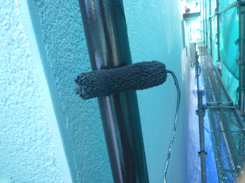 竪樋の二回目塗装をしています。