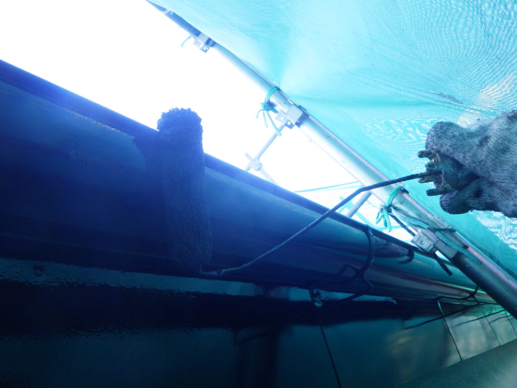 軒先板金部の上塗り塗装中です。