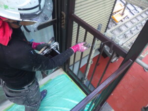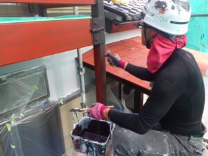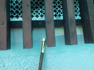 鉄部は、中塗りの一回だけではムラが出やすいので上からもう一度塗装をします。