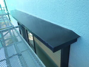 庇板金、玄関屋根、壁水切りの中塗り塗装が終わりました。