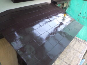中塗り塗料が乾いた箇所から、上塗りを進めていきます。