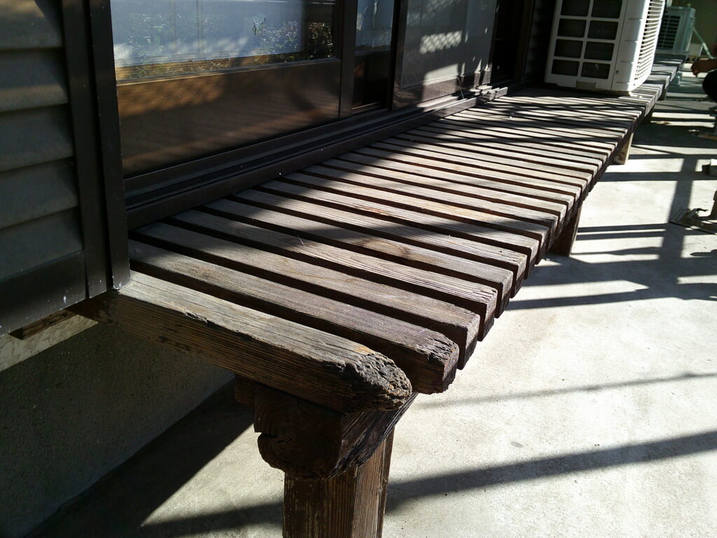 日が常に当たる戸袋や濡れ縁は、保護塗膜の劣化で色が褪せてしまっていたり