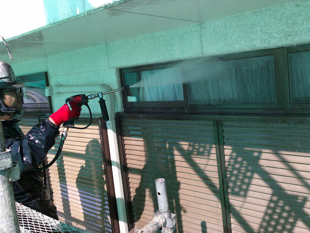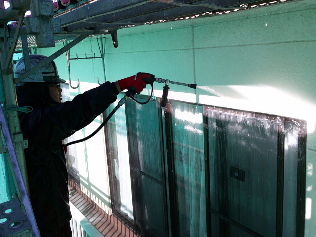 塗装を行う箇所の汚れやゴミを落としながら、雨戸や網戸などの汚れも一緒に洗い流していきます。