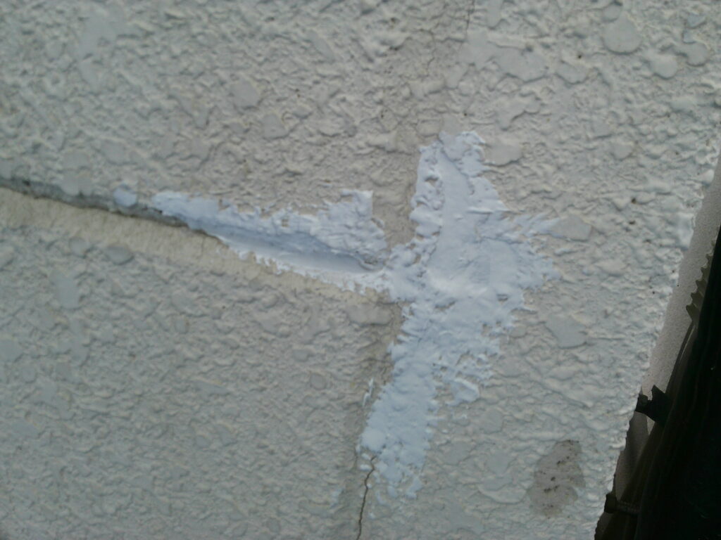 塗料では埋められない隙間にコーキングを充填し、ヘラで均しました。