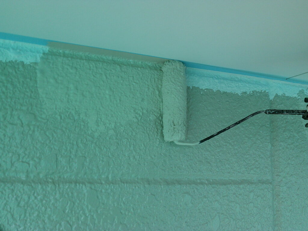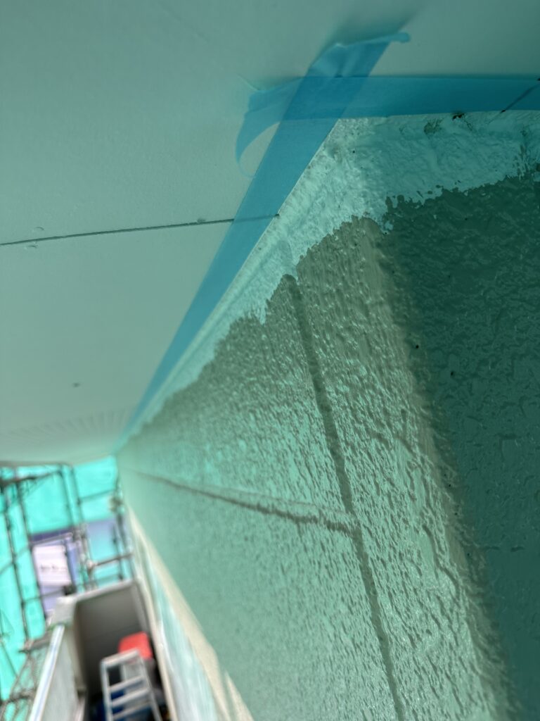 ローラーの先に塗料を付けすぎてしまうとマスキングからはみ出し、軒天についてしまうので気を付けながら塗装しました。