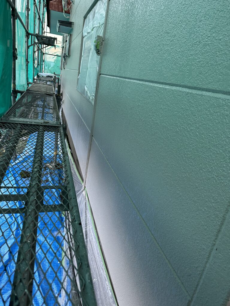 取り合いは日が当たりにくい箇所ではありますが、外壁塗装同様、一回だけではムラが出来てしまうので二回目塗装をして仕上げるのが基本です。
