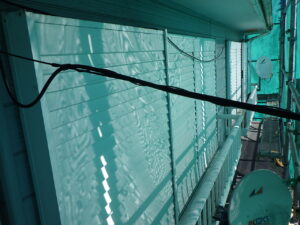 メッシュシートは塗料飛散防止のため取り付けてあります。