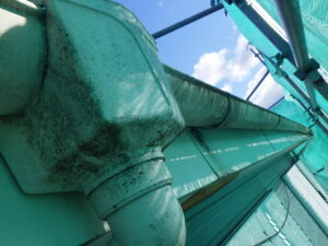 雨樋や外壁は、日が当たりにくく湿気が溜まりやすい箇所では、見てわかるほどの苔と汚れが付着しています。