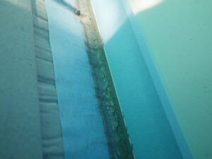 コーキング剤の左右にカッターで切り込みを入れ、取り除きました。