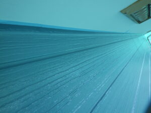 膜厚をつくるため、塗料を均一に伸ばしていきました。