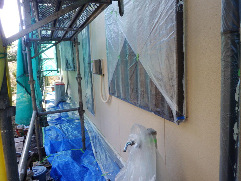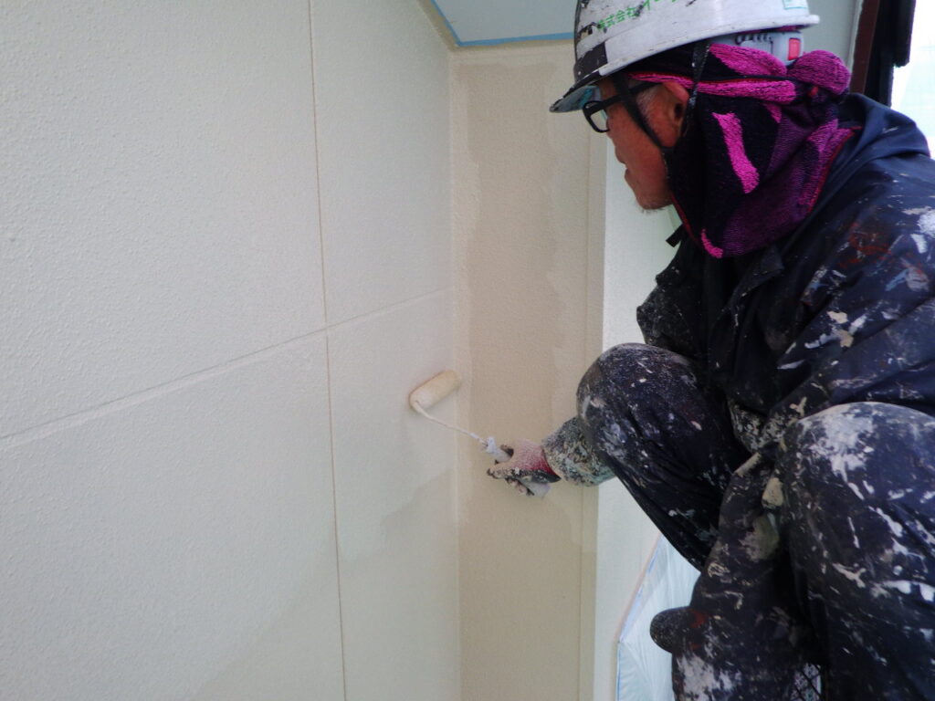 宇都宮市で外壁窯業系サイディングの仕上げ塗装に入りました。