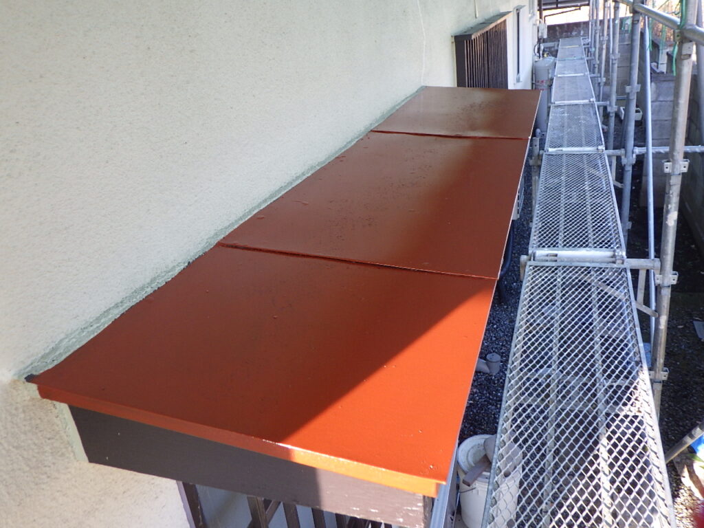 中塗り塗料が乾いてから、上塗り塗装を行いました。