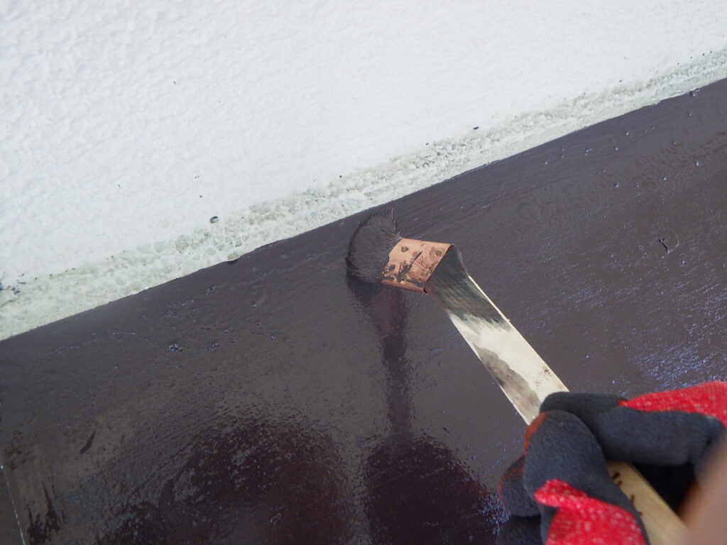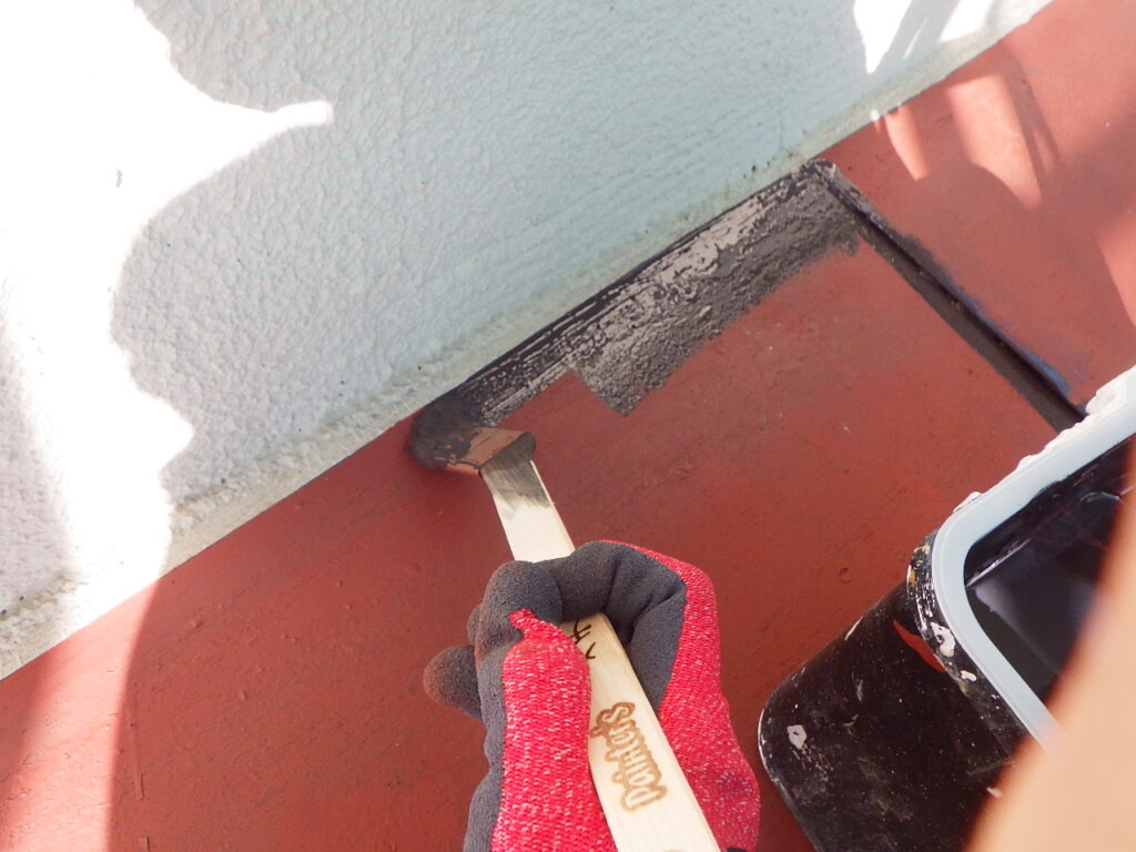 外壁に塗料が付かないよう、刷毛で丁寧に見切ります。また段差等の細かな箇所も刷毛で塗装し、全体をローラーで均一な塗膜をつくります。