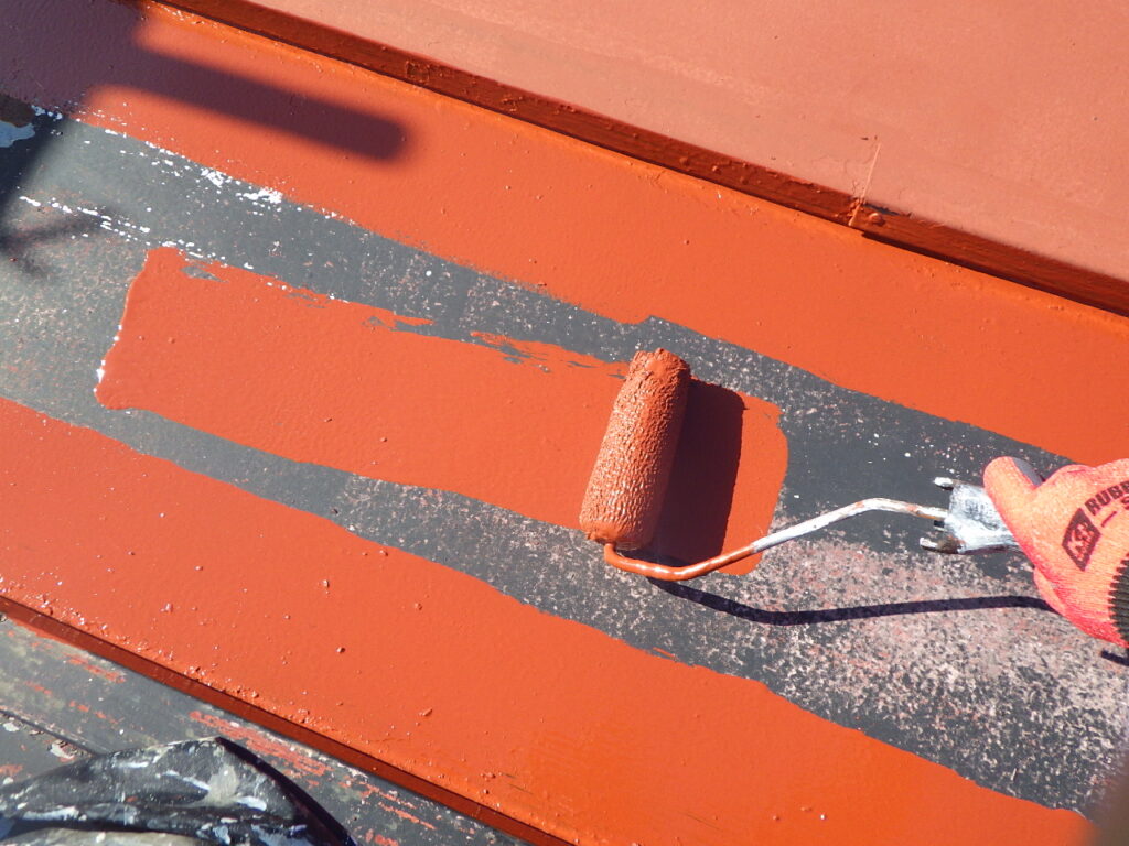 鉄・トタン・亜鉛メッキなどの素材や脆弱な各種旧塗膜等、幅広く塗装が可能な関西ペイントのザウルスEXを下塗り材で使用しています。