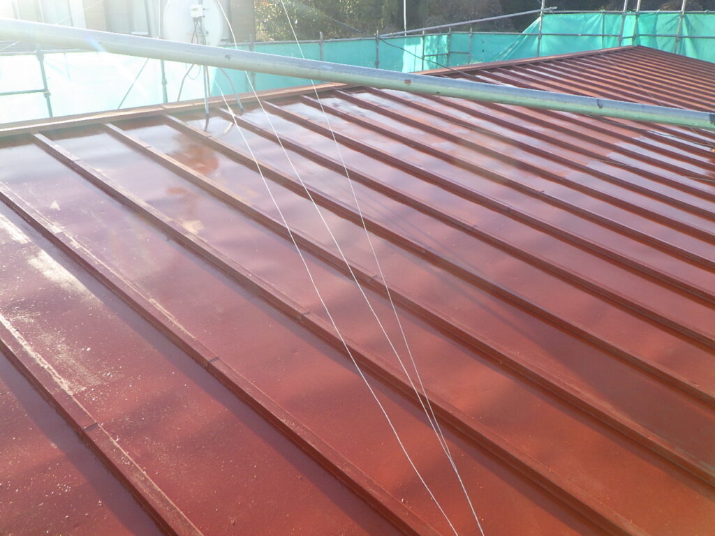 ザウルスEXと相性が良い関西ペイントの弱溶剤系シリコン樹脂塗料で上塗りを行いました。