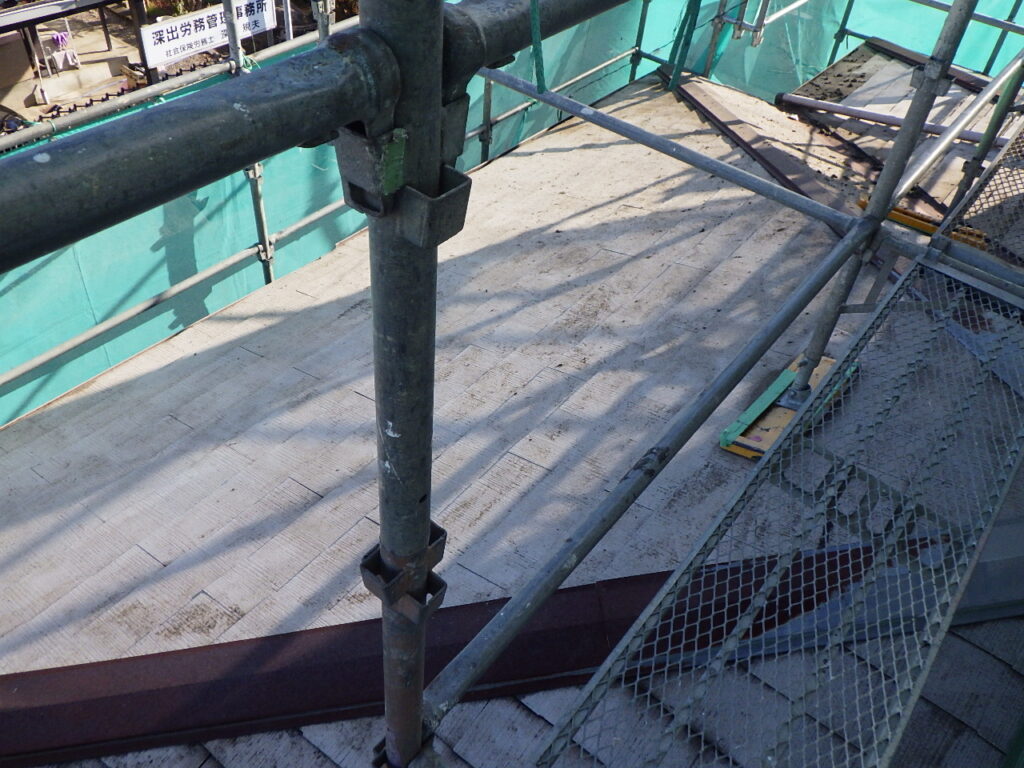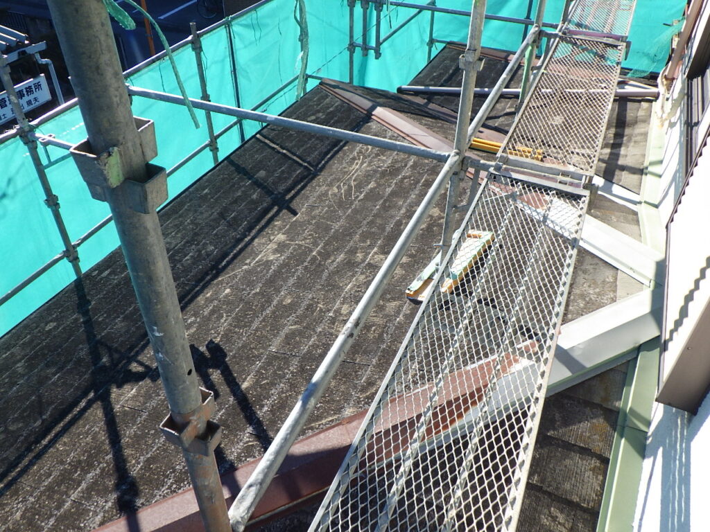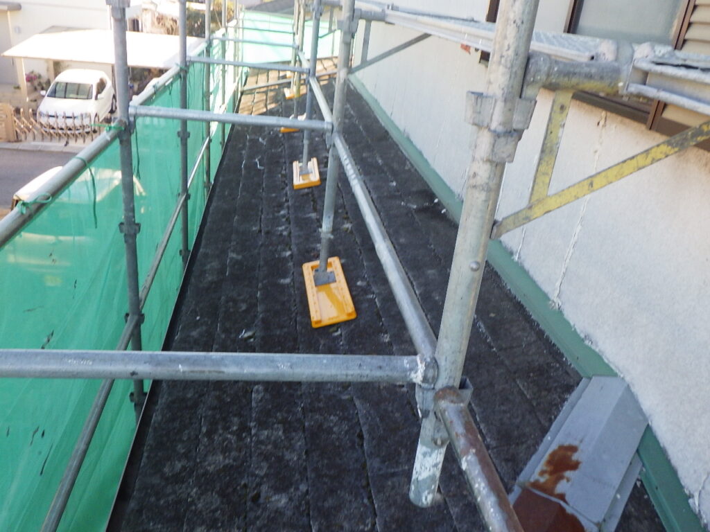 ホーム > 壬生町で下屋根のスレート屋根の塗装が着工です。
