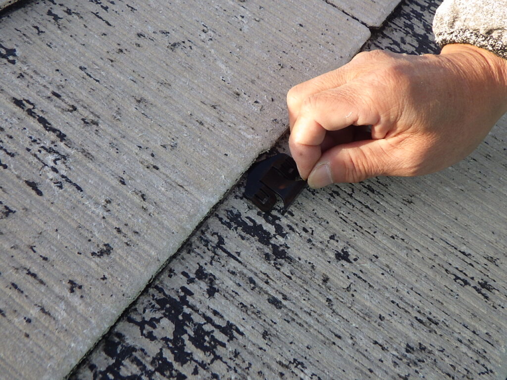塗装をした際に、屋根材同士の隙間を塗料で埋めてしまうと、雨水の排出が出来なくなり雨漏りの原因となるので、屋根材同士の間にタスペーサー(縁切り部材)を入れ、隙間をつくることで毛細管現象による雨漏りを防ぐことが出来ます。今日はここまで。また明日。