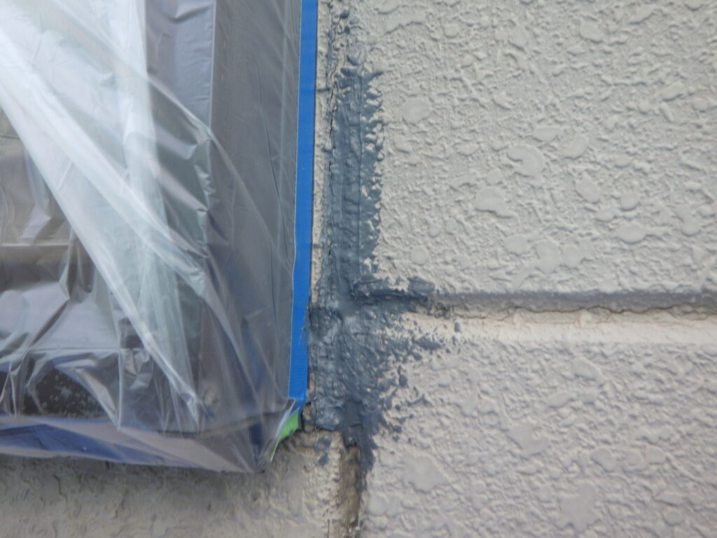 地震等で出来てしまったクラック(ひび)をコーキング補修しました。