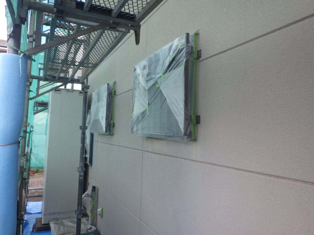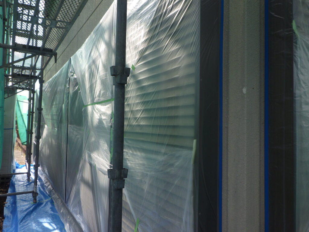 宇都宮市で外壁塗装の養生作業をしました。