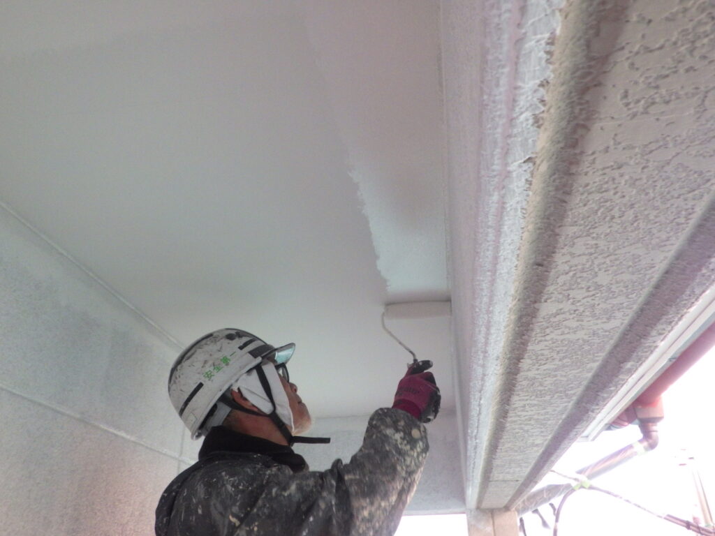 軒天の二回目塗装中です。