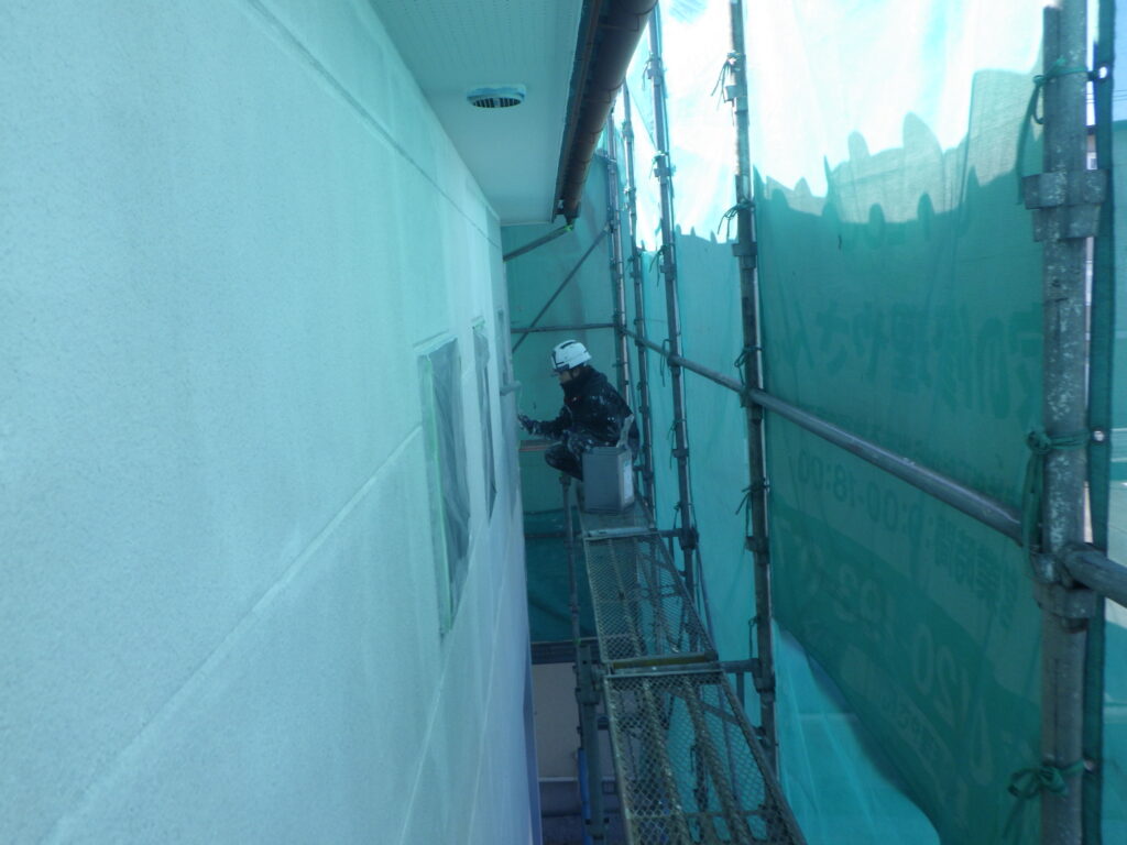 外壁の凹凸の関係上、ローラーでは塗装が厳しいので刷毛で塗装をしました。