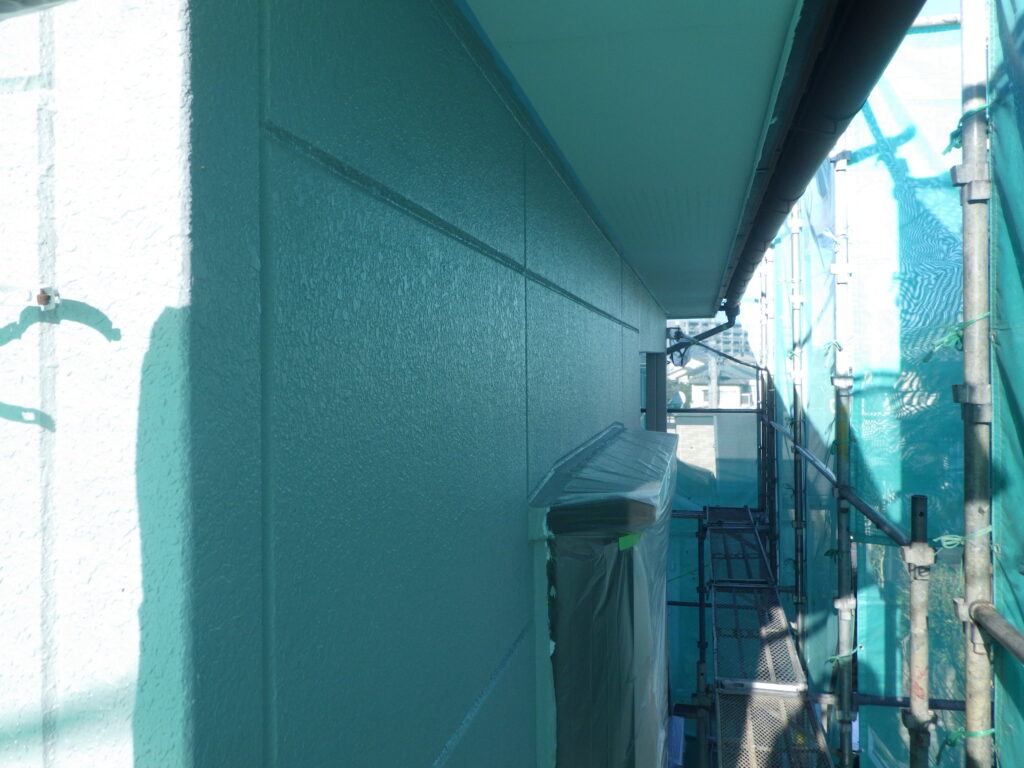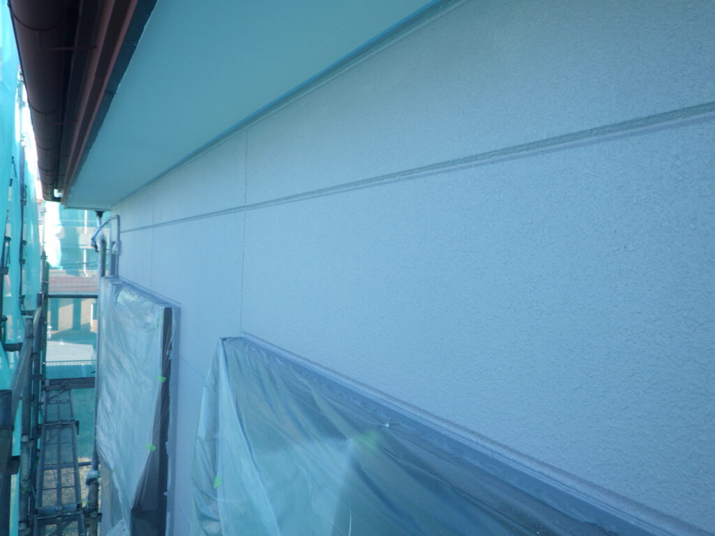 外壁の中塗り塗装と取り合い塗装が完了しました。