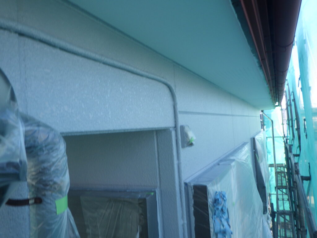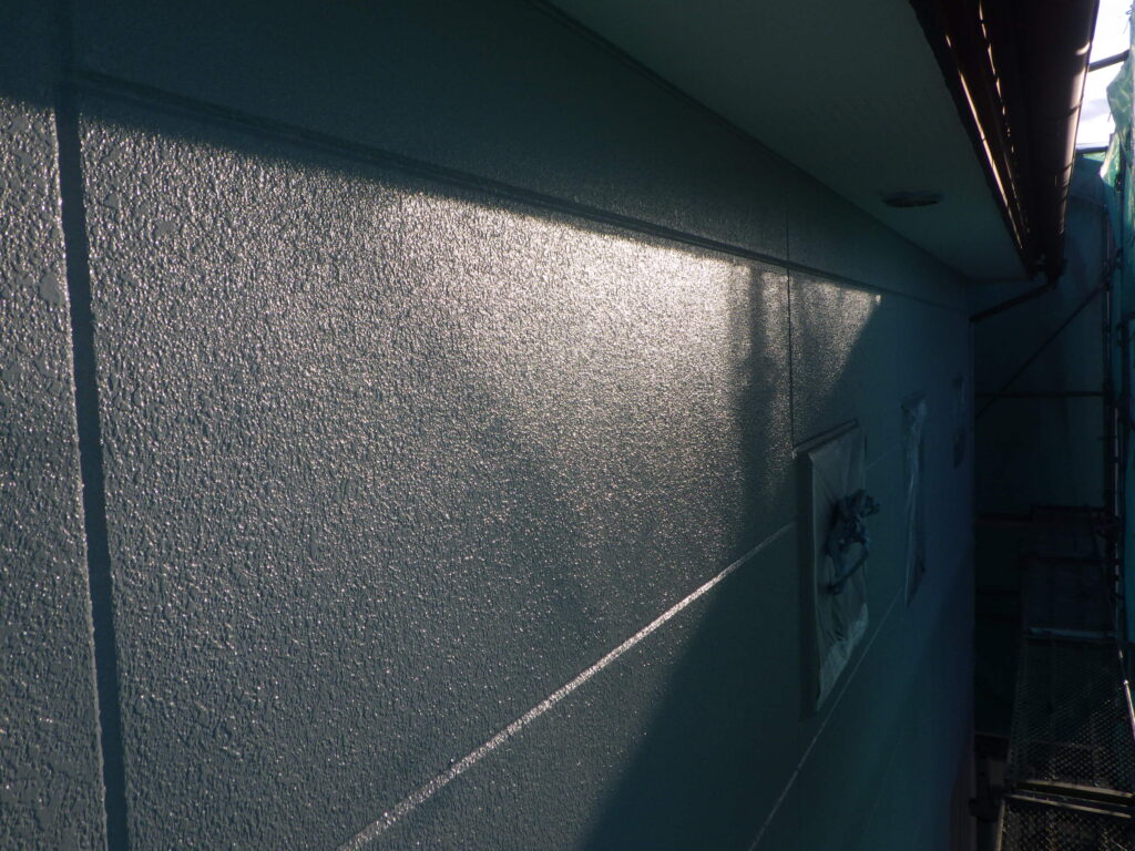 外壁では、中塗りでも光沢が出て綺麗に仕上がり、取り合いは二回塗りをしたことで、十分な膜厚が出来ました。