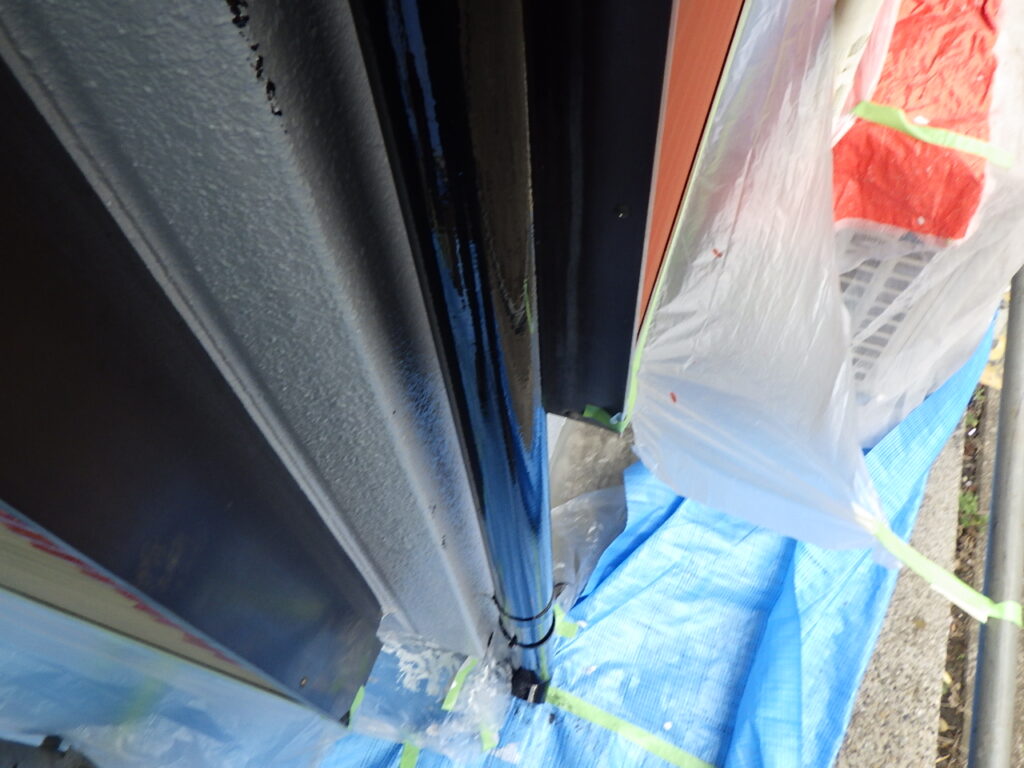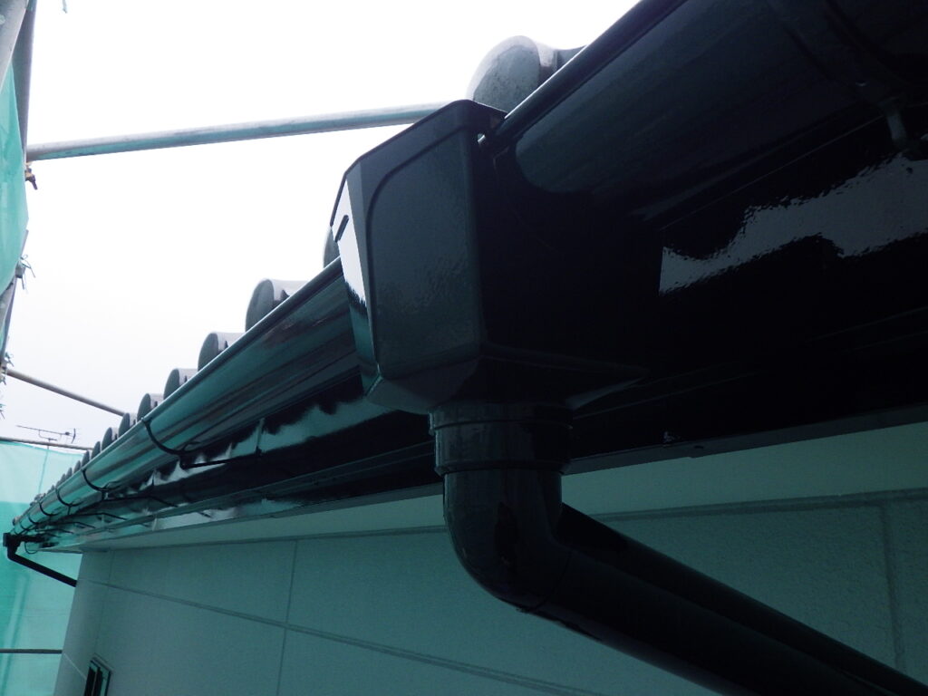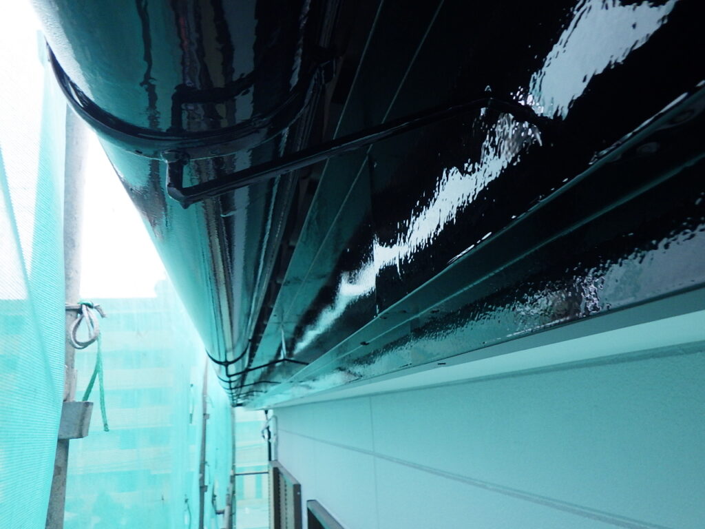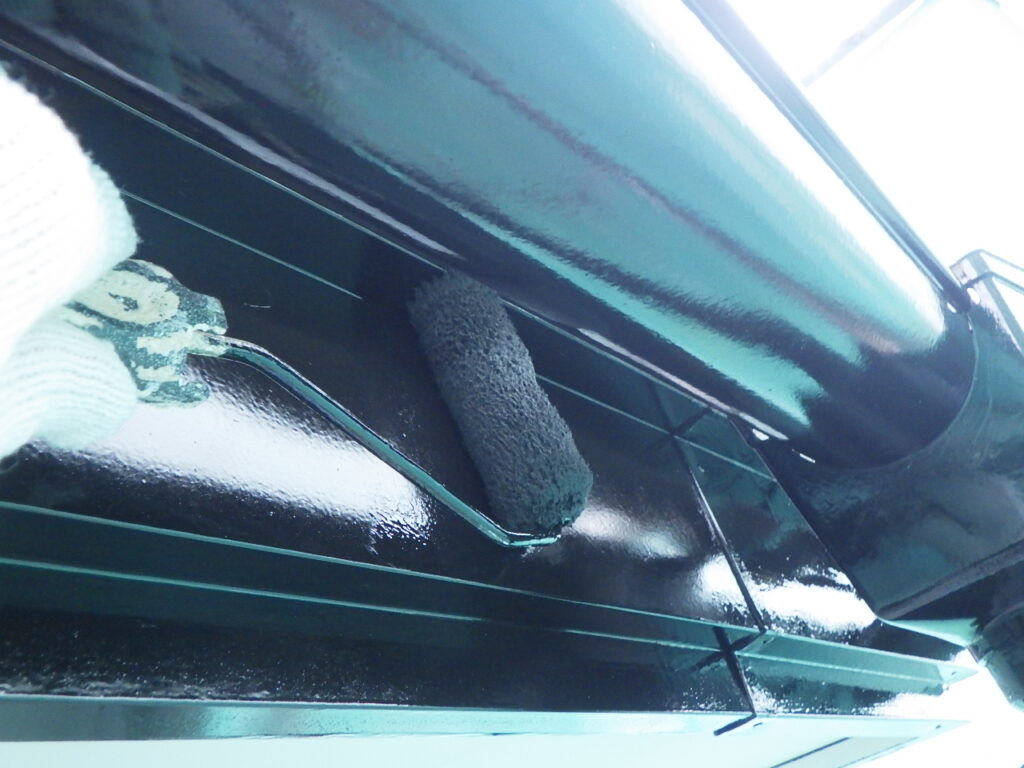 鼻隠し板金と軒樋の上塗り塗装が完了しました。