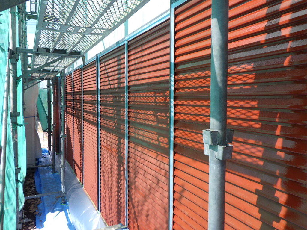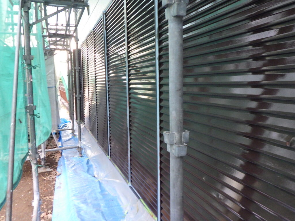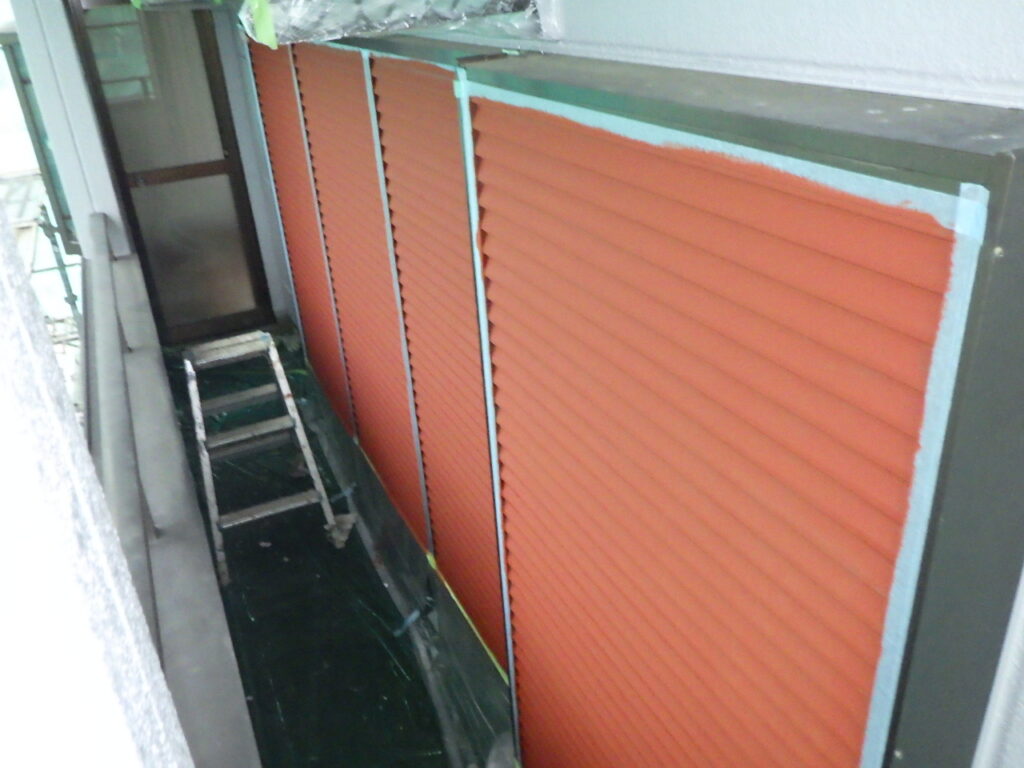 雨戸戸袋の中塗り塗装が完了しました。