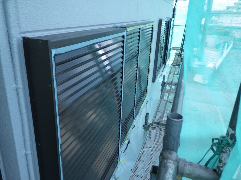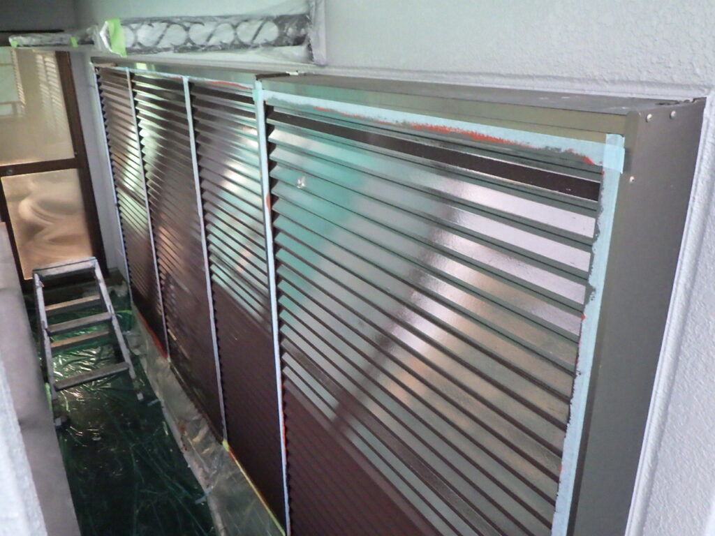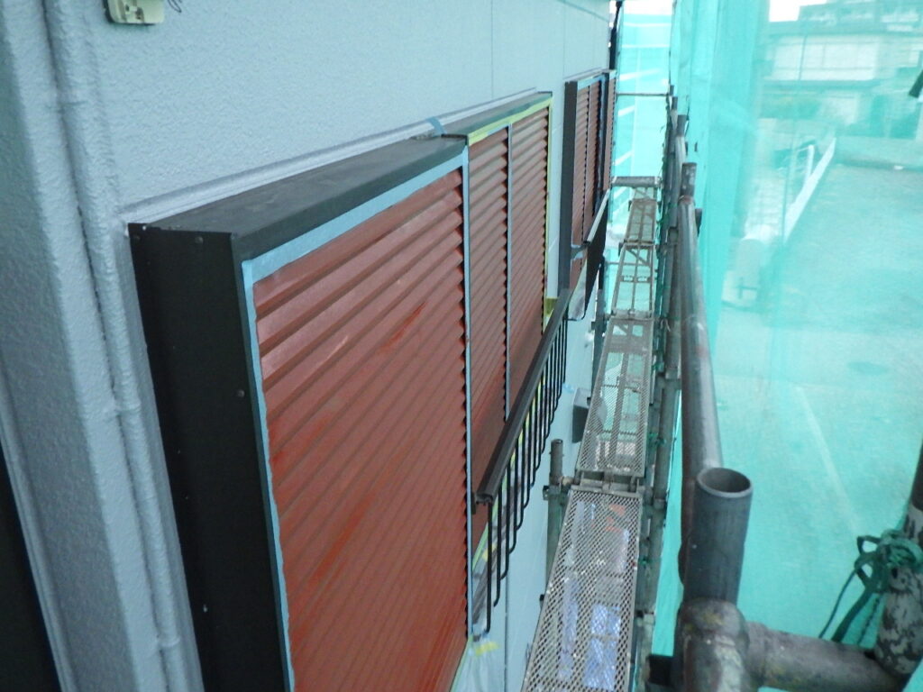 雨戸戸袋の下塗り塗装が完了しました。