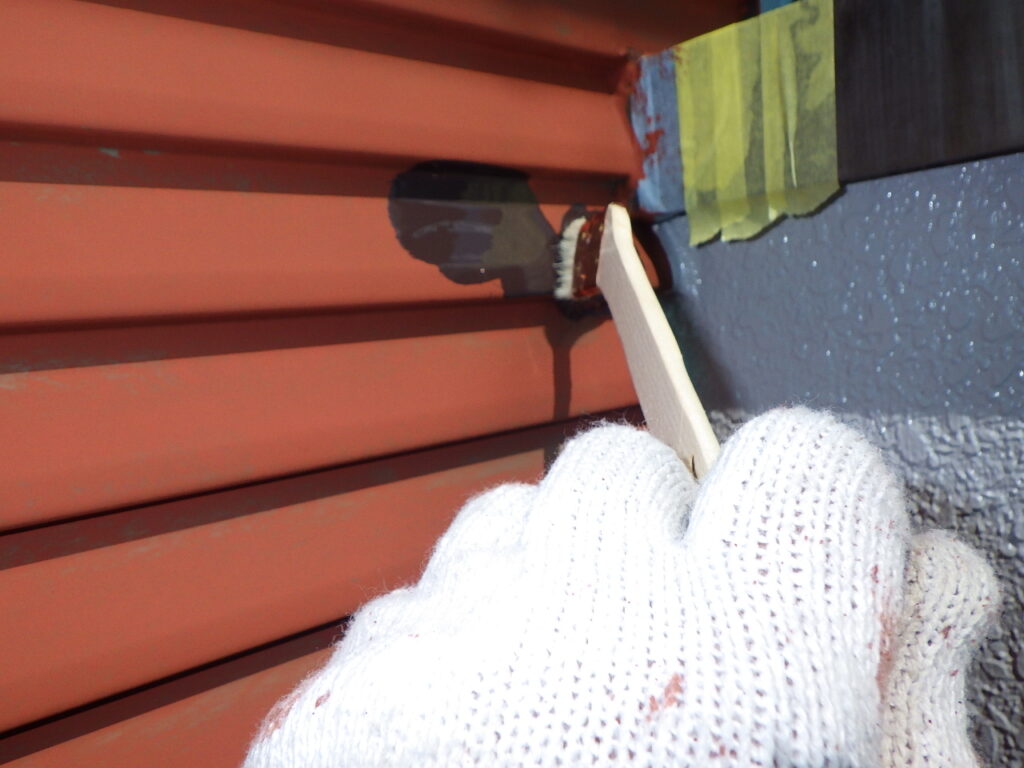 雨戸戸袋の中塗り塗装をしています。
