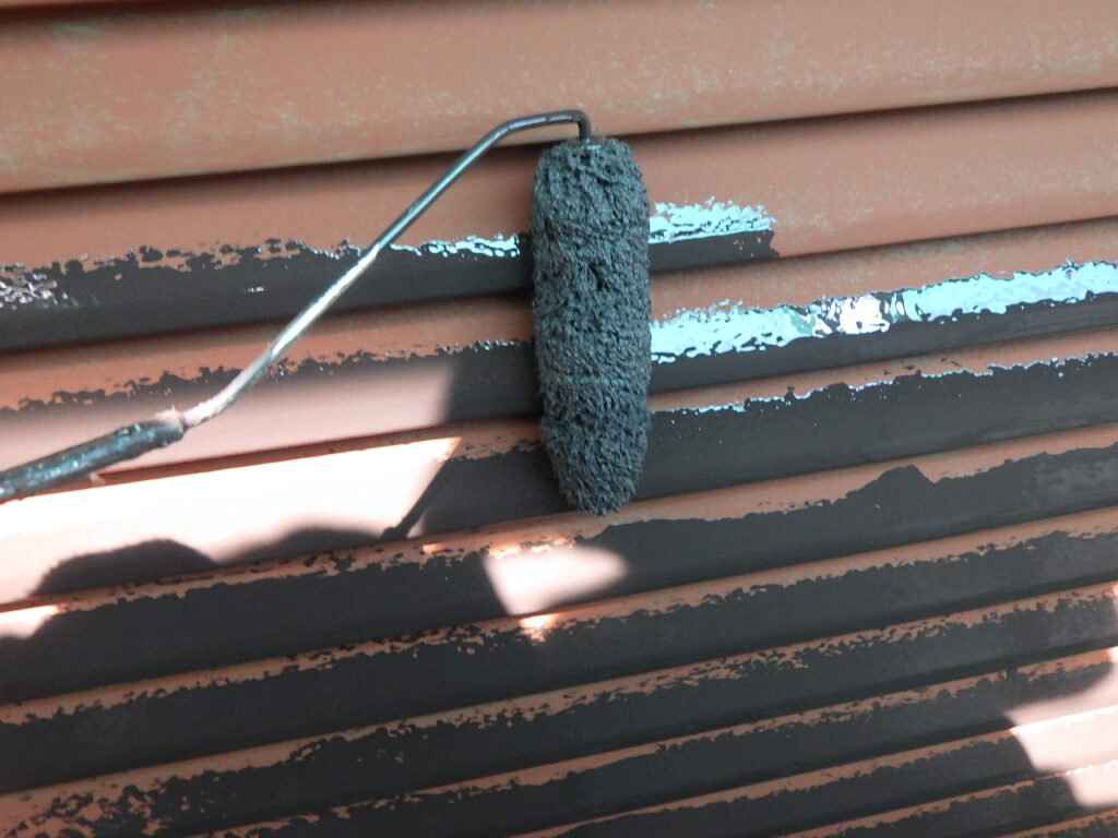 刷毛、ローラーで下塗り塗装をしています。