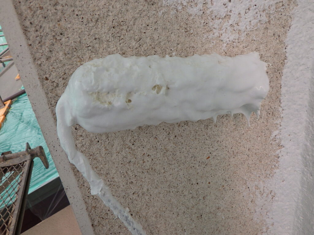 塗料を引っ張りすぎると塗膜が薄くなってしまうので、外壁の状態に合わせて確認をしながら塗る範囲を決めて塗装を進めます。下塗り材として