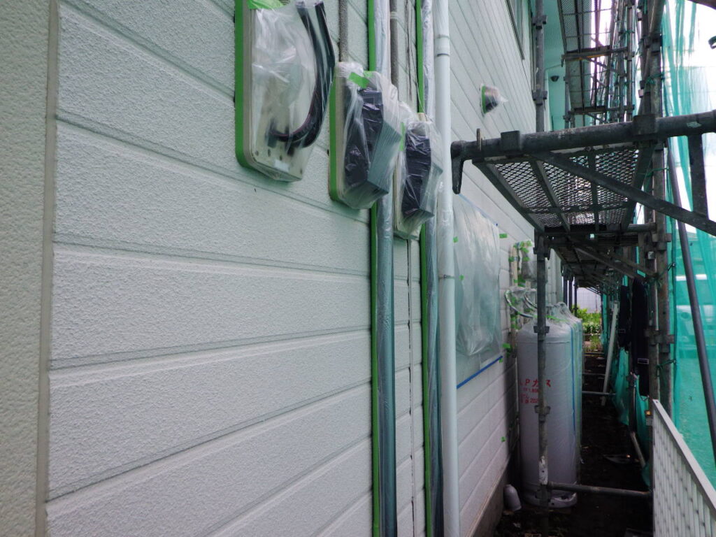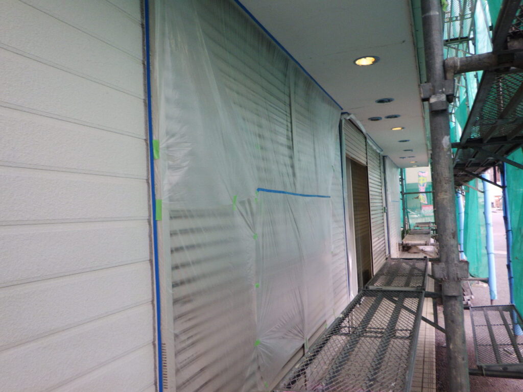北面は塗装を行わない物が多いので、細かく養生を行いました。