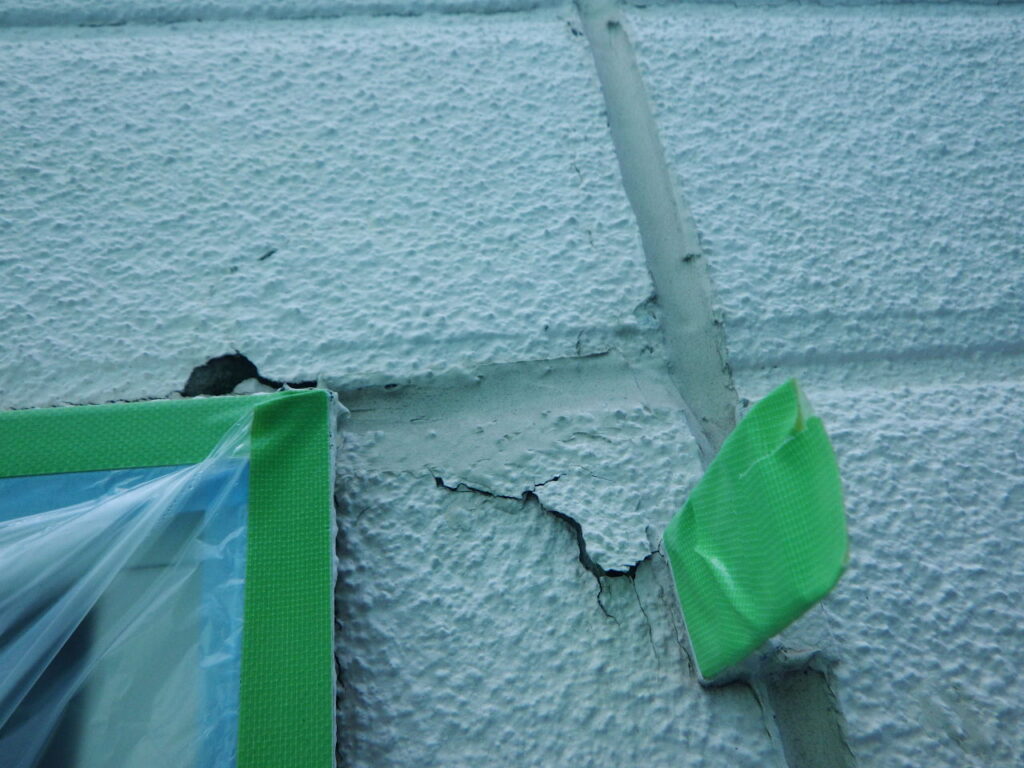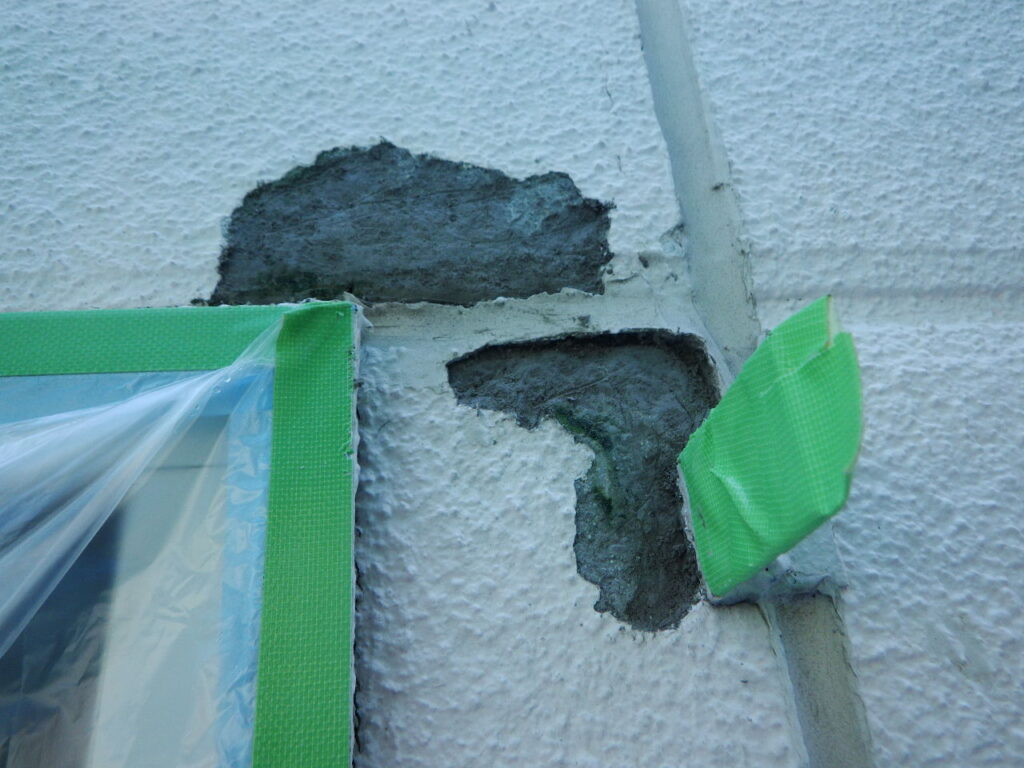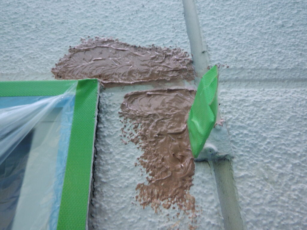旧塗膜を剥がしてそのまま塗装をすると、段差が出来てしまって見た目が良くない、また水が侵入しないようコーキングを充填し補修を行いました。