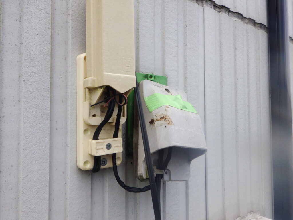 既存の外壁材を撤去する前に、外壁に取り付けられているメーターやコンセント等を取り外していきます。