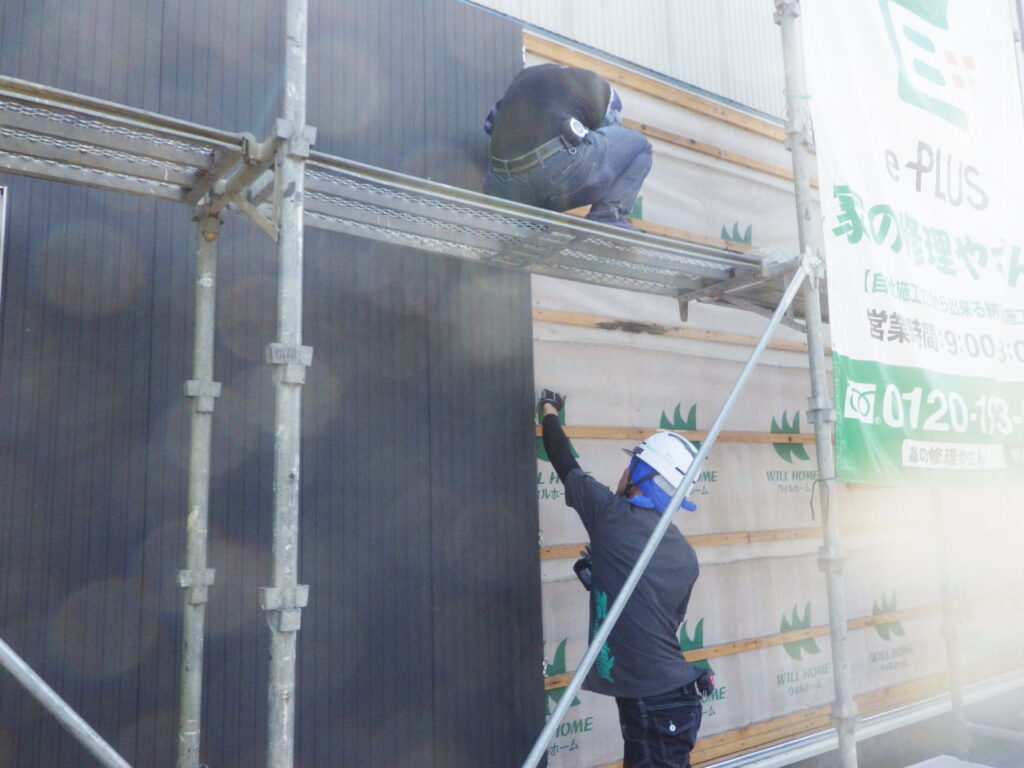 宇都宮市で窯業系外壁サイディング張りが始まりました。