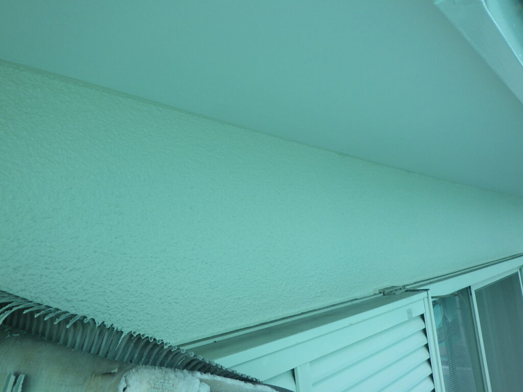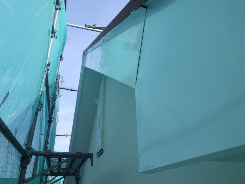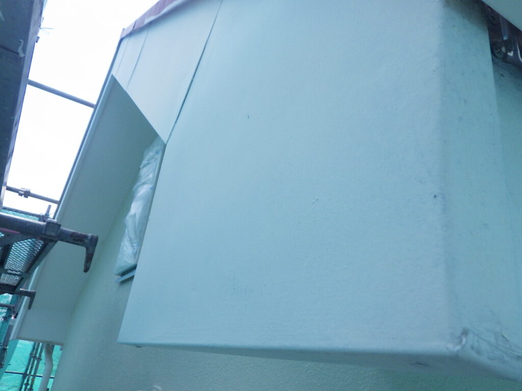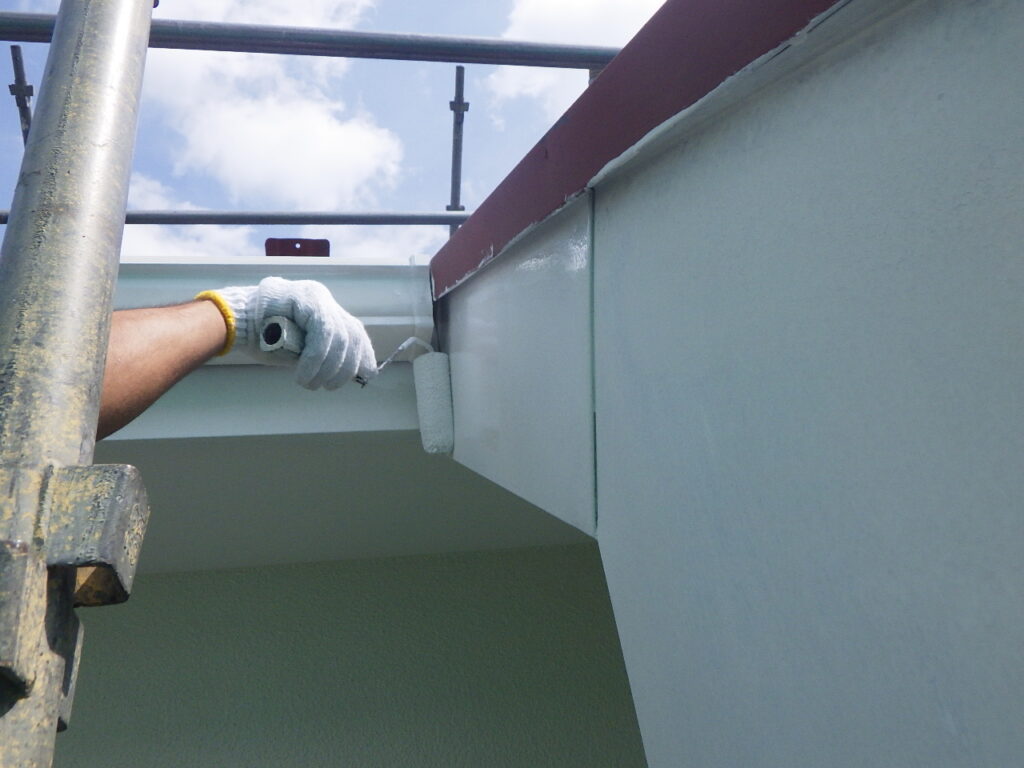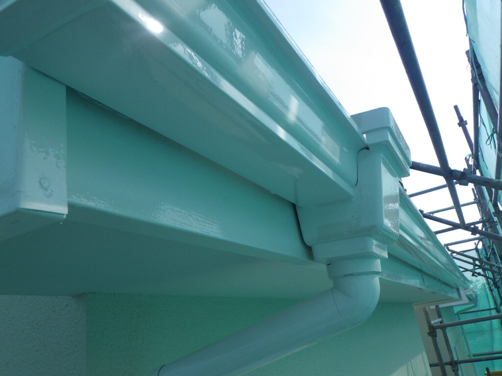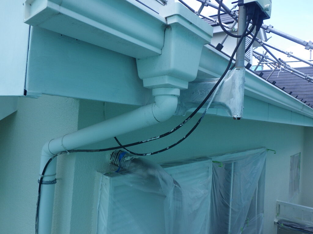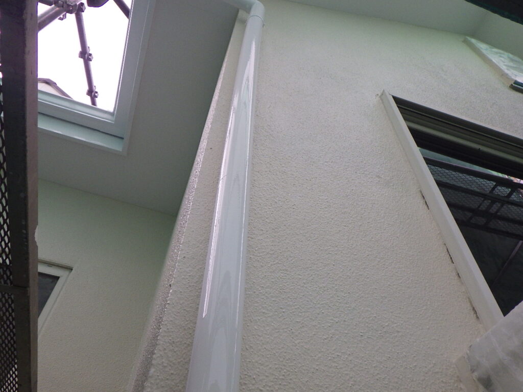 外壁と軒天の取り合い塗装が完了しています。