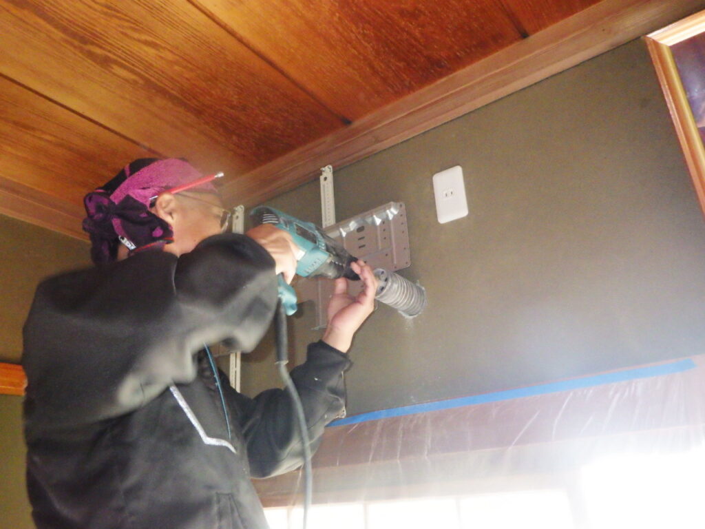 和室の壁が京壁と呼ばれる左官壁の一つで、表面が柔らかく作られている為、ネジが効きません。