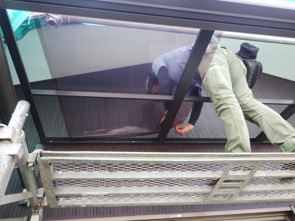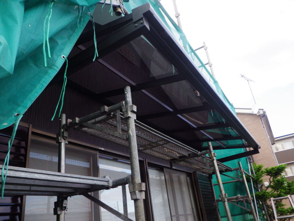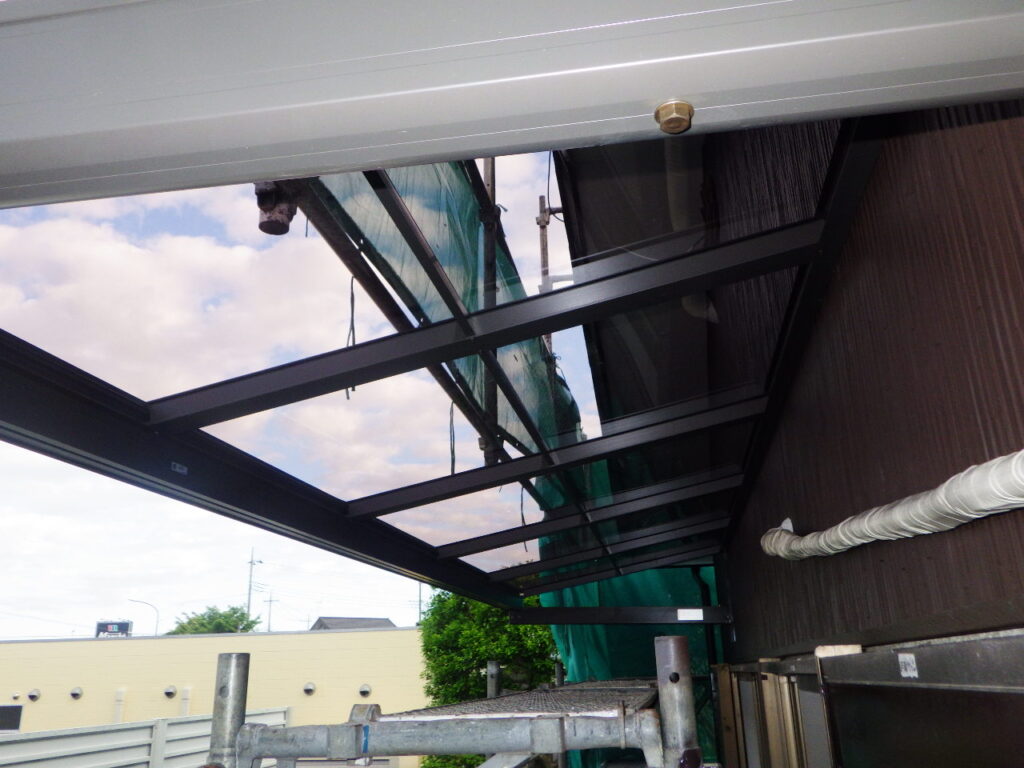 ポリカーボネートは、太陽面に強い面とそうでない面がありますので、必ず確認をしながら取り付けました。
