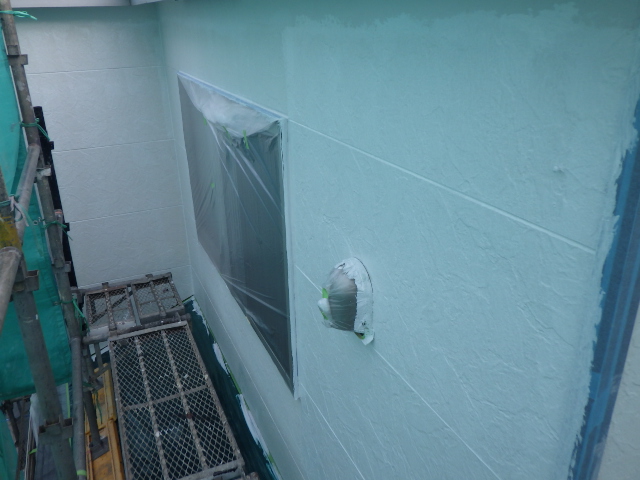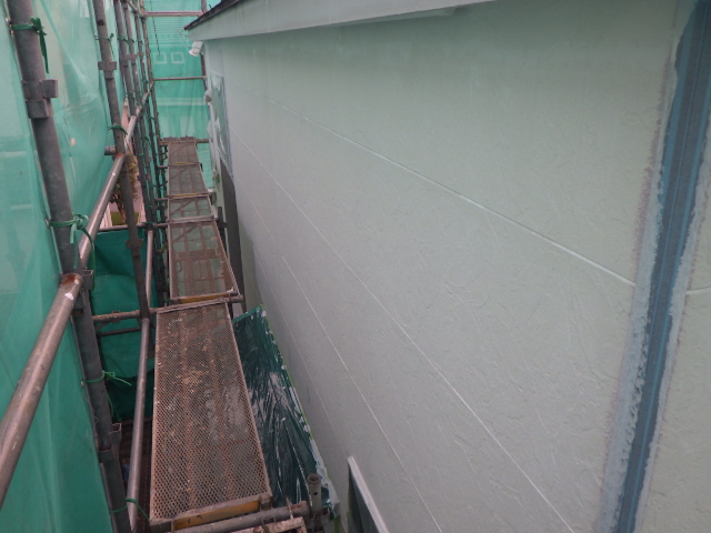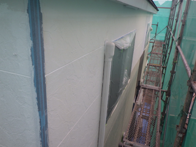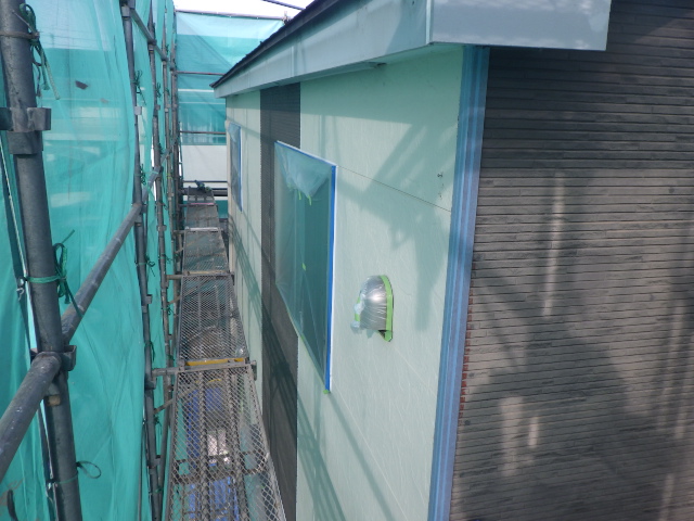 外壁塗装下塗りが上、中段が終わりで本日は終了です。